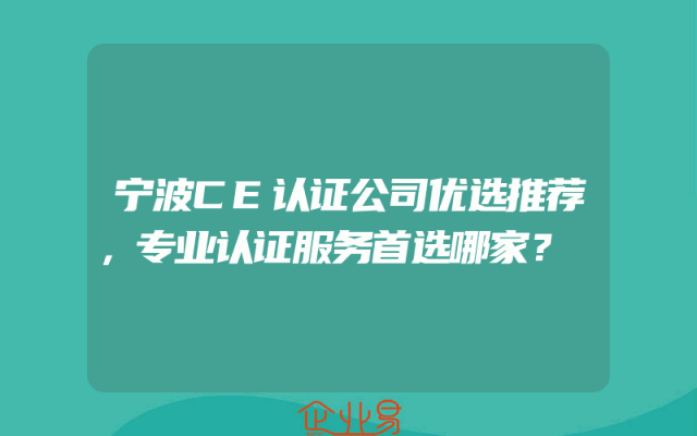 - 宁波CE认证公司优选推荐,专业认证服务首选哪家?