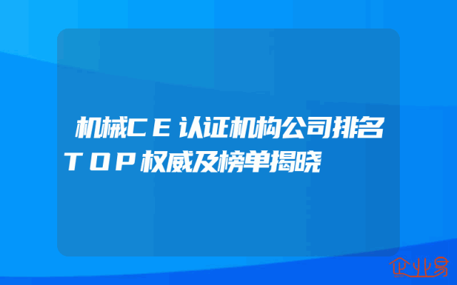 - 机械CE认证机构公司排名TOP权威及榜单揭晓