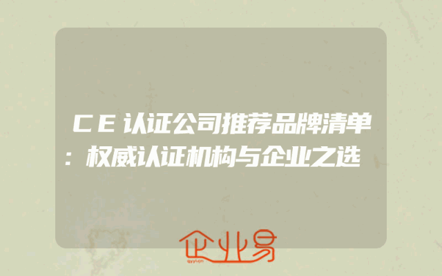 - CE认证公司推荐品牌清单:权威认证机构与企业之选