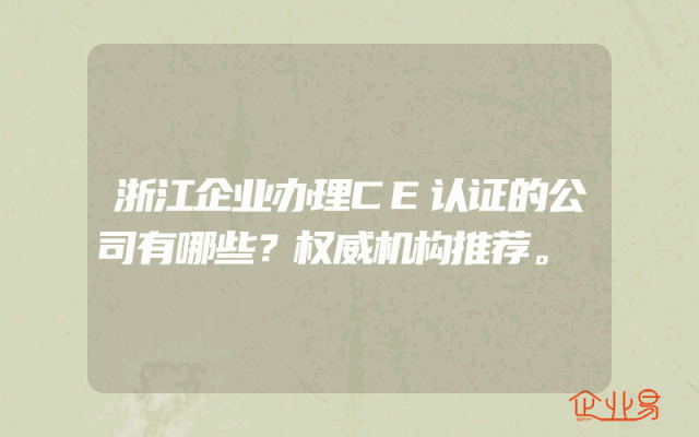 - 浙江企业办理CE认证的公司有哪些?权威机构推荐。