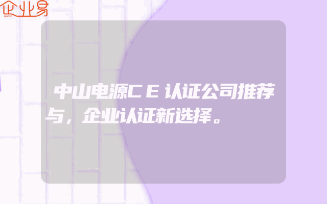 - 中山电源CE认证公司推荐与解析:企业认证新选择一、引言随着国际贸易的不断发展,企业面临的认证要求也日益严格。作为中山市一家专业的电源CE认证公司,为企业提供全方位的认证服务,助其顺利进入国际市场,是我们的重要职责。本文将详细解析中山电源CE