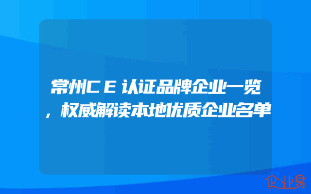 - 常州CE认证品牌企业一览,权威解读本地优质企业名单