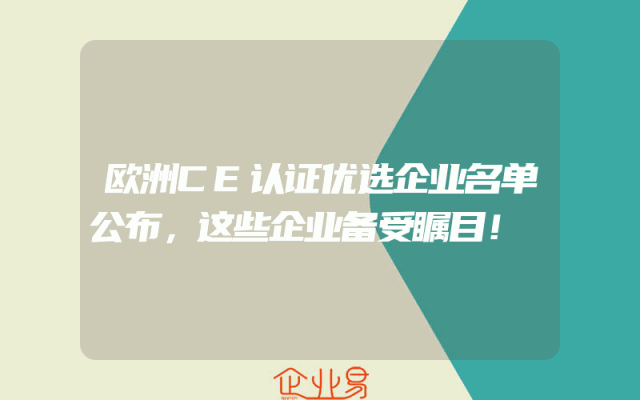 - 欧洲CE认证优选企业名单公布,这些企业备受瞩目!
