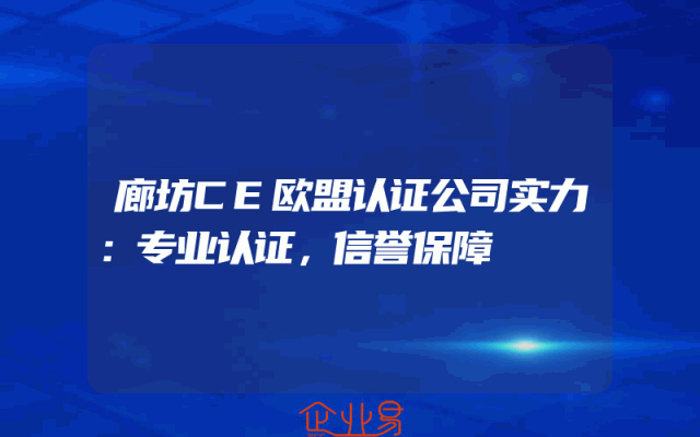 - 廊坊CE欧盟认证公司实力:专业认证,信誉保障