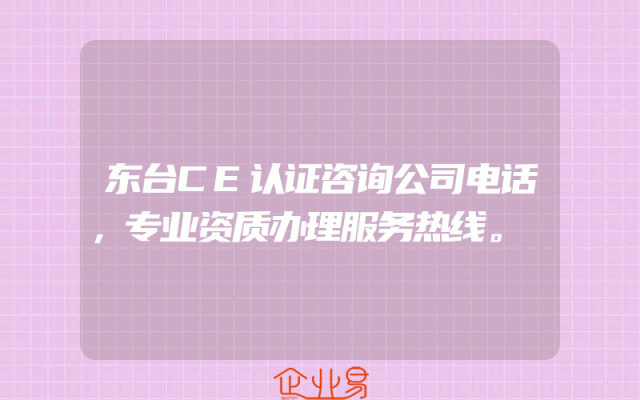 - 东台CE认证咨询公司电话,专业资质办理服务热线。
