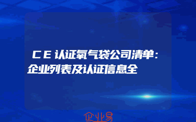 - CE认证氧气袋公司清单:企业列表及认证信息全