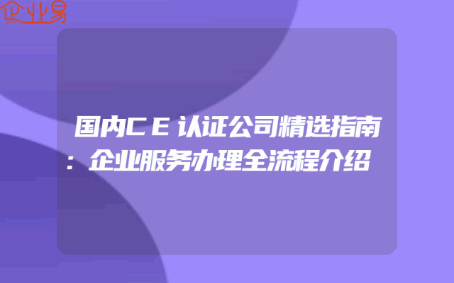 - 国内CE认证公司精选指南:企业服务办理全流程介绍随着市场竞争的日益激烈和企业国际化的趋势加强,国内CE认证的重要性愈发凸显。作为专业的企业服务行业从业者,本文将为您详细介绍企业服务办理全流程,帮助您选择适合的CE认证公司。一、了解CE认