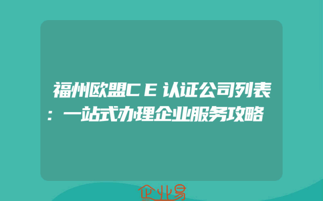 - 福州欧盟CE认证公司列表:一站式办理企业服务攻略