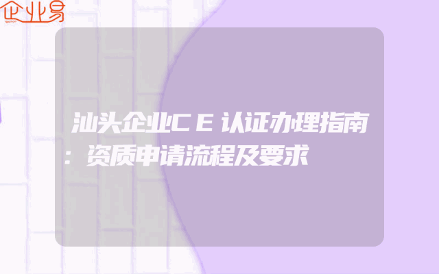 - 汕头企业CE认证办理指南:资质申请流程及要求