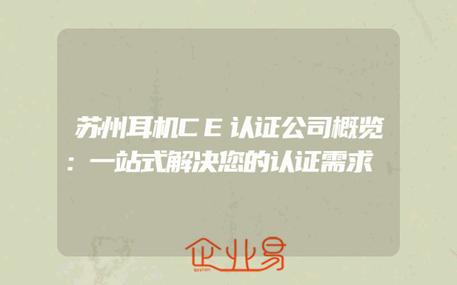 - 苏州耳机CE认证公司概览:一站式解决您的认证需求一、公司介绍位于苏州市的耳机CE认证公司,致力于为企业提供全方位的认证服务。随着电子产品市场的快速发展,企业对产品质量的自我要求和国际市场的需求不断攀升,认证成为了一个重要的环节。该公