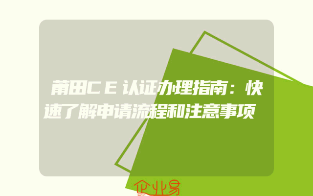 - 莆田CE认证办理指南:快速了解申请流程和注意事项