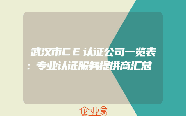 - 武汉市CE认证公司一览表:专业认证服务提供商汇总