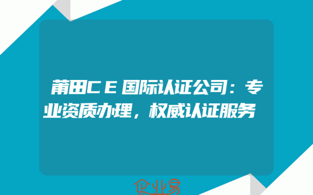 - 莆田CE国际认证公司:专业资质办理,权威认证服务
