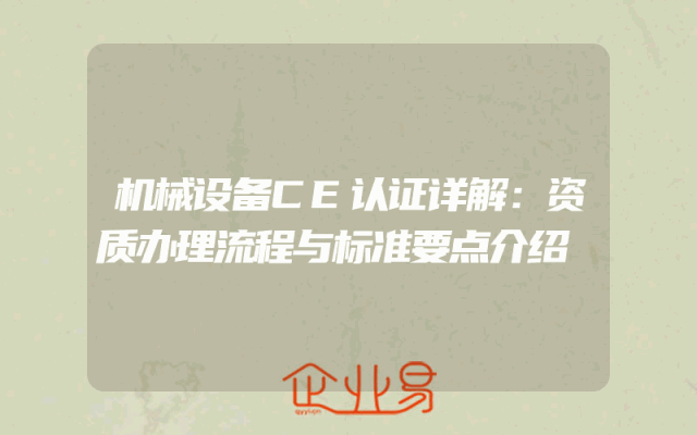 - 机械设备CE认证详解:资质办理流程与标准要点介绍
