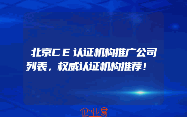 - 北京CE认证机构推广公司列表,权威认证机构推荐!