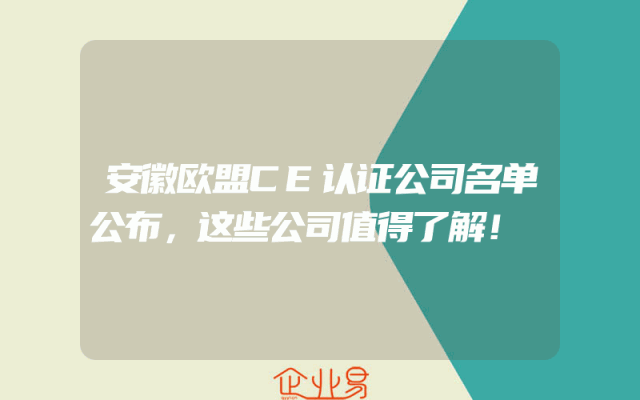 - 安徽欧盟CE认证公司名单公布,这些公司值得了解!