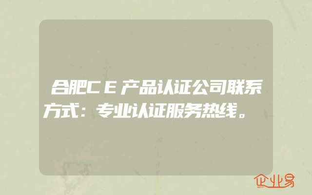 - 合肥CE产品认证公司联系方式:专业认证服务热线。