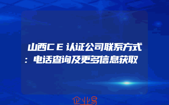 - 山西CE认证公司联系方式:电话查询及更多信息获取