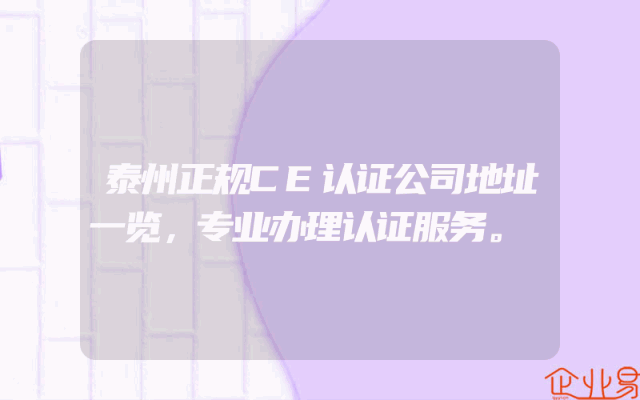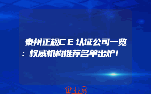 - 泰州正规CE认证公司一览:权威机构推荐名单出炉!