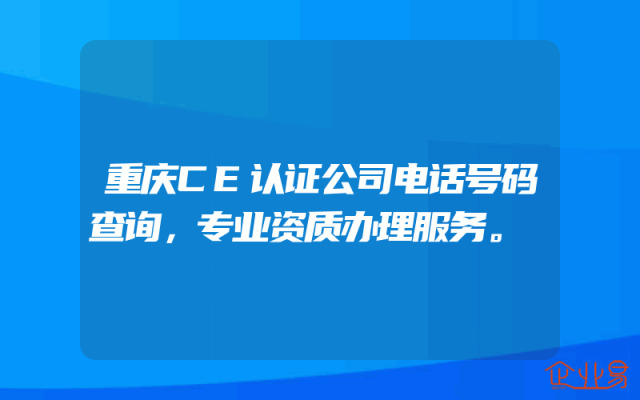 - 重庆CE认证公司电话号码查询,专业资质办理服务。