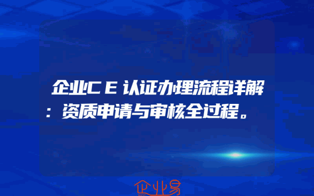 - 企业CE认证办理流程详解:资质申请与审核全过程。