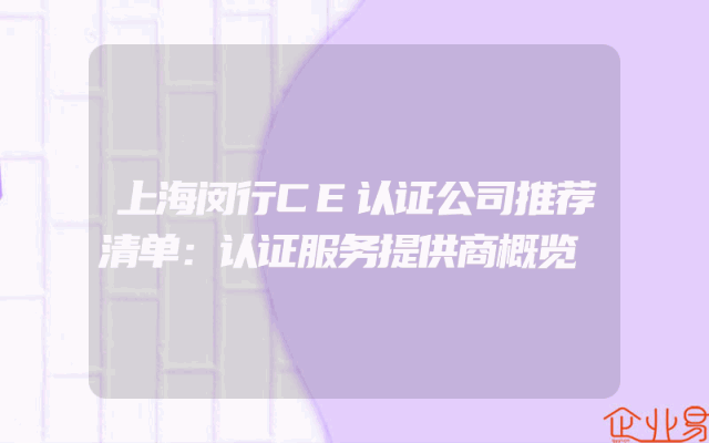 - 上海闵行CE认证公司推荐清单:认证服务提供商概览