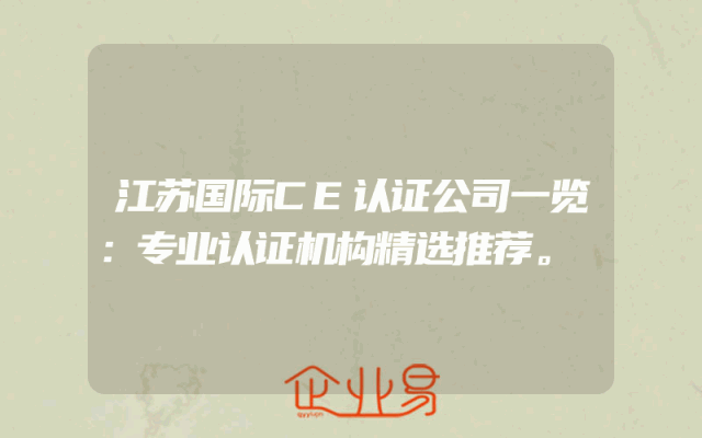 - 江苏国际CE认证公司一览:专业认证机构精选推荐。