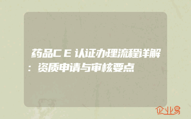 - 药品CE认证办理流程详解:资质申请与审核要点