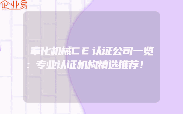 - 奉化机械CE认证公司一览:专业认证机构精选推荐!