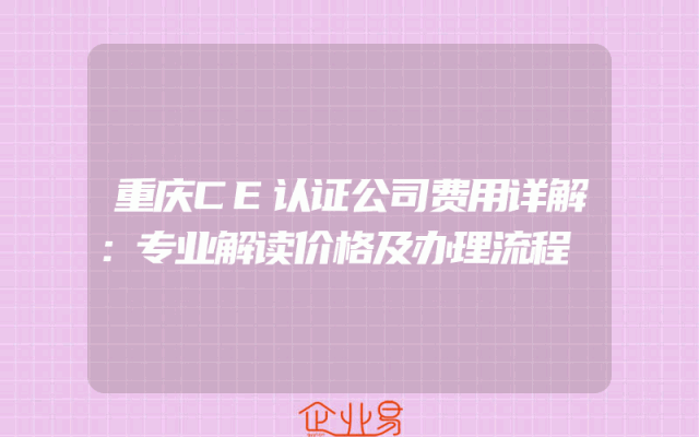 - 重庆CE认证公司费用详解:专业解读价格及办理流程