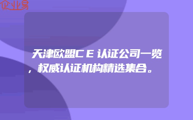 - 天津欧盟CE认证公司一览:权威认证机构精选集合引言随着国际贸易的不断发展,企业在出口产品时面临的认证要求也日益严格。欧盟CE认证作为欧洲市场准入的重要标准之一,受到了广泛关注。天津作为重要的港口城