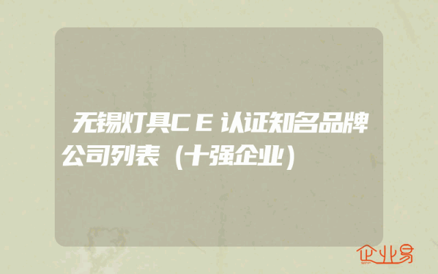 - 无锡灯具CE认证知名品牌公司列表(十强企业)