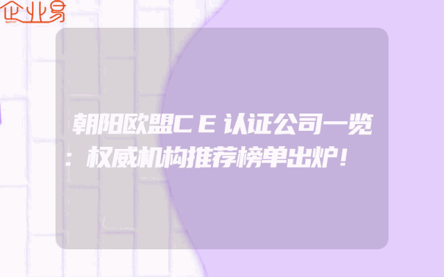 - 朝阳欧盟CE认证公司一览:权威机构推荐榜单出炉!