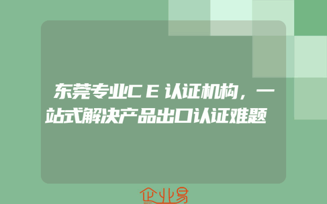 - 东莞专业CE认证机构,一站式解决产品出口认证难题