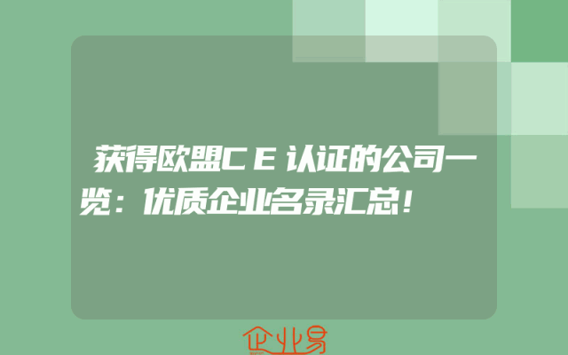 - 获得欧盟CE认证的公司一览:优质企业名录汇总!