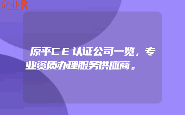 - 原平CE认证公司一览,专业资质办理服务供应商。