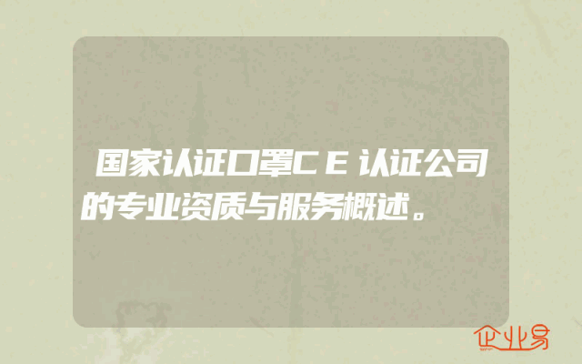- 国家认证口罩CE认证公司的专业资质与服务概述。