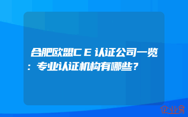 - 合肥欧盟CE认证公司一览:专业认证机构有哪些?