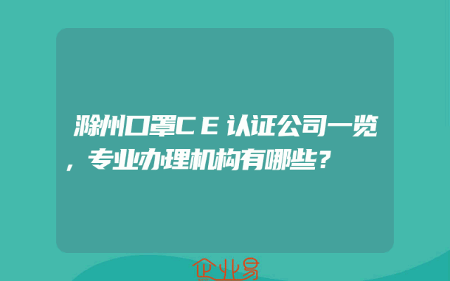 - 滁州口罩CE认证公司一览,专业办理机构有哪些?