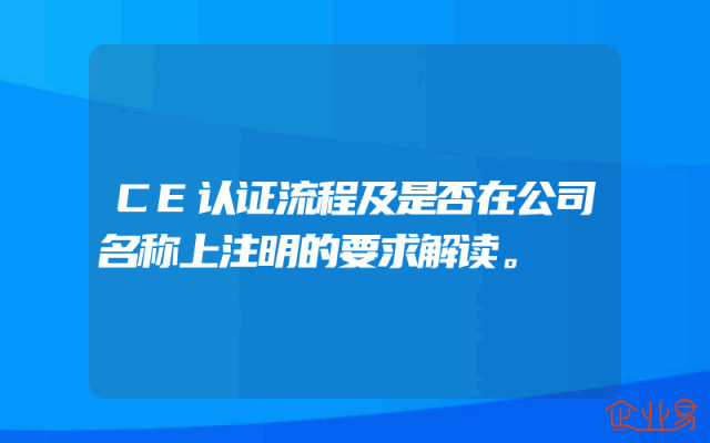 - CE认证流程及是否在公司名称上注明的要求解读。