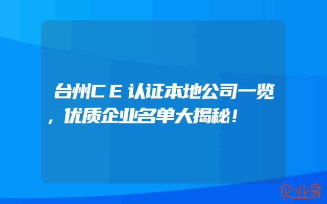 - 台州CE认证本地公司一览,优质企业名单大揭秘!