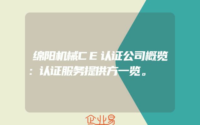 - 绵阳机械CE认证公司概览:认证服务提供方一览。