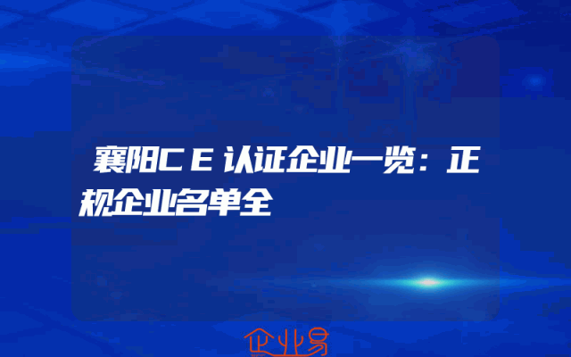 - 襄阳CE认证企业一览:正规企业名单全