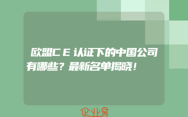 - 欧盟CE认证下的中国公司有哪些?最新名单揭晓!