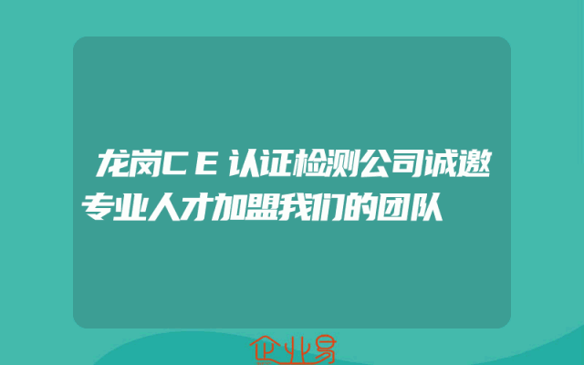 - 龙岗CE认证检测公司诚邀专业人才加盟我们的团队