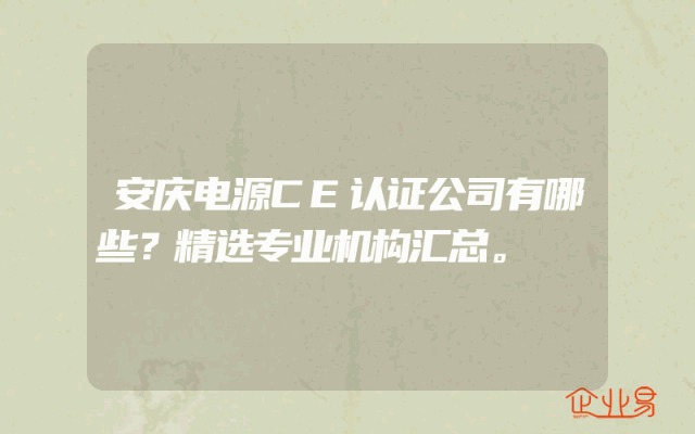 - 安庆电源CE认证公司有哪些?精选专业机构汇总。
