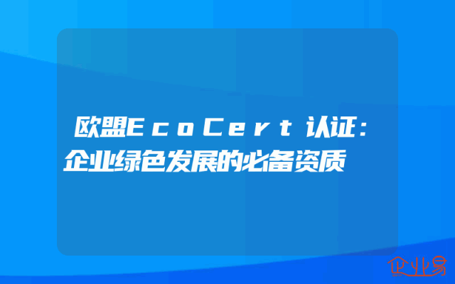 - 欧盟EcoCert认证:企业绿色发展的必备资质