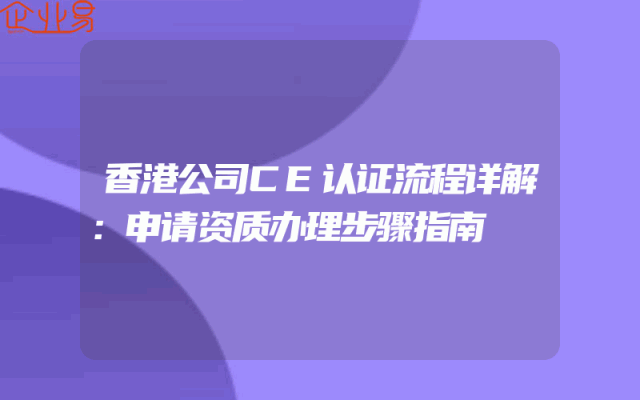 - 香港公司CE认证流程详解:申请资质办理步骤指南