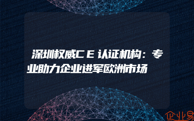 - 深圳权威CE认证机构:专业助力企业进军欧洲市场一、引言随着全球化进程的加速,越来越多的中国企业开始将视线投向海外市场,尤其是欧洲市场。然而,进军欧洲市场并非易事,除了需要高品质的产品和服务,还需要符合欧洲的法规和标准。CE认证作为欧洲市场的