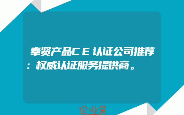 - 奉贤产品CE认证公司推荐:权威认证服务提供商。